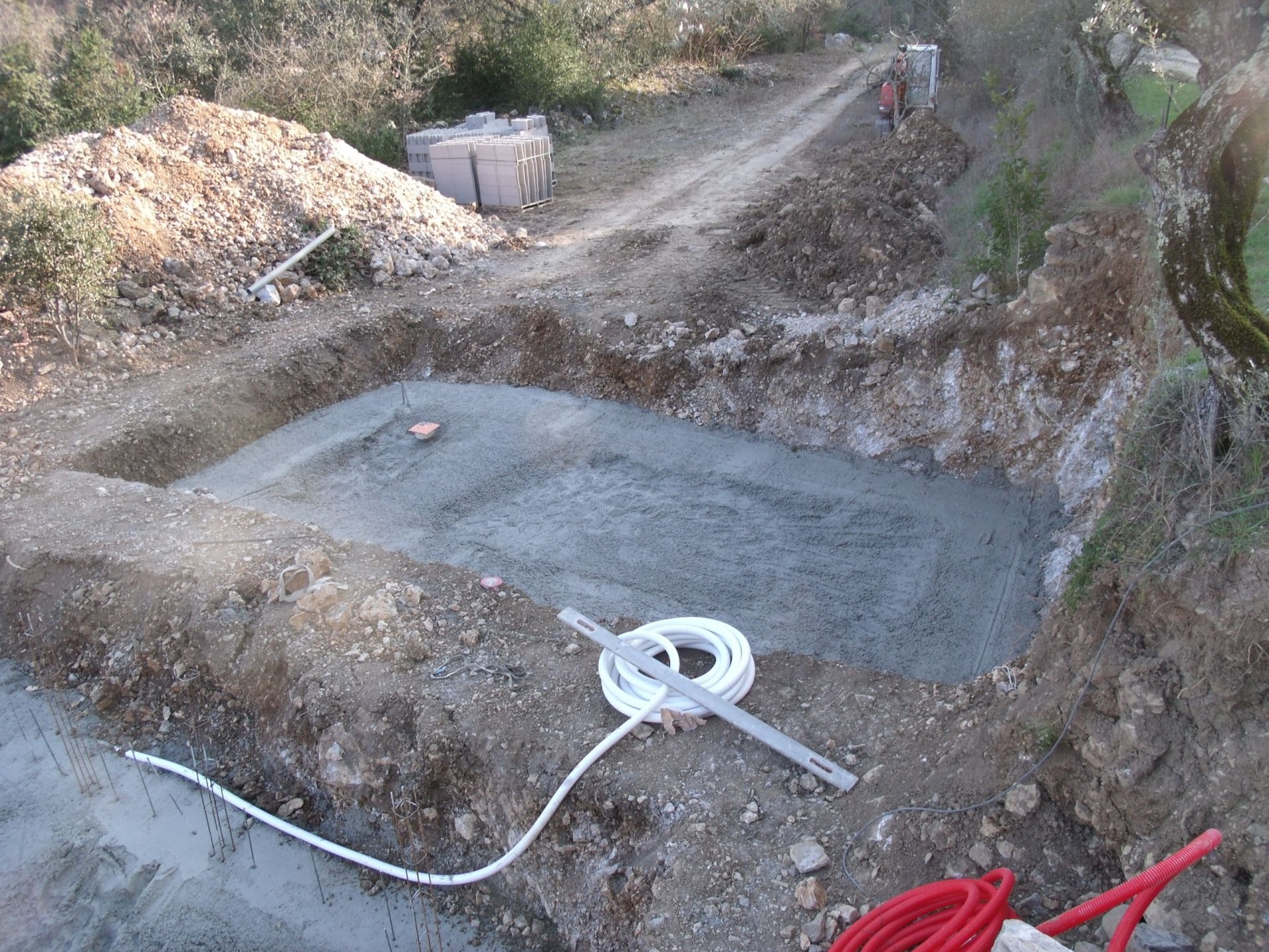 Terrassement : Réalisé sous notre contrôle, une attention particulière est portée aux finitions qui doivent impérativement laisser un terrain 'naturel’ sans terre remuée ou rapportée pour niveler ,car cela peut poser un problème pour la structure de la piscine. La terre extraite du terrassement sera entreposée chez vous (sauf si le devis prévoit de l’évacuer).